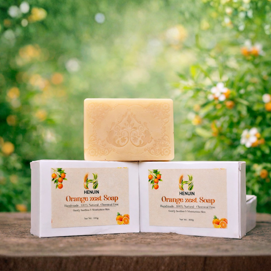 Henuin Orange Zest Soap is infused with natural orange extracts that help cleanse, brighten, and refresh the skin. Its citrus aroma rejuvenates the senses while gently exfoliating dead skin cells.